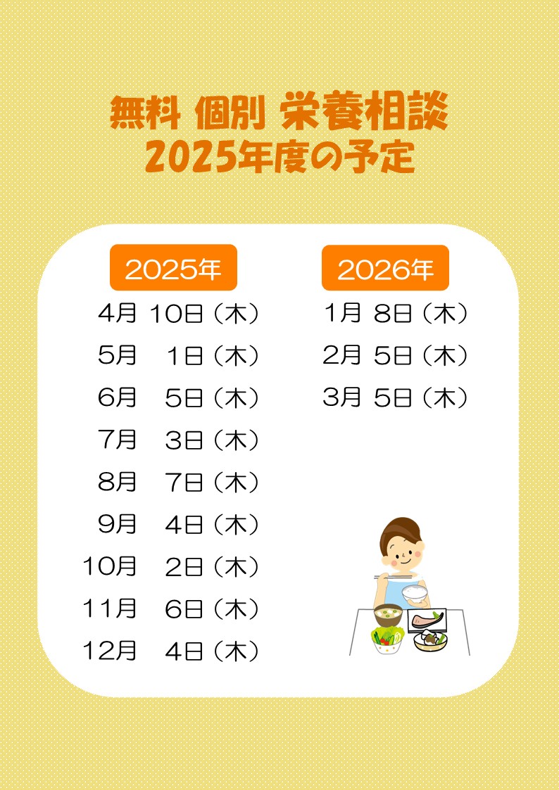 その他、随時で栄養相談、栄養指導も可能です。
