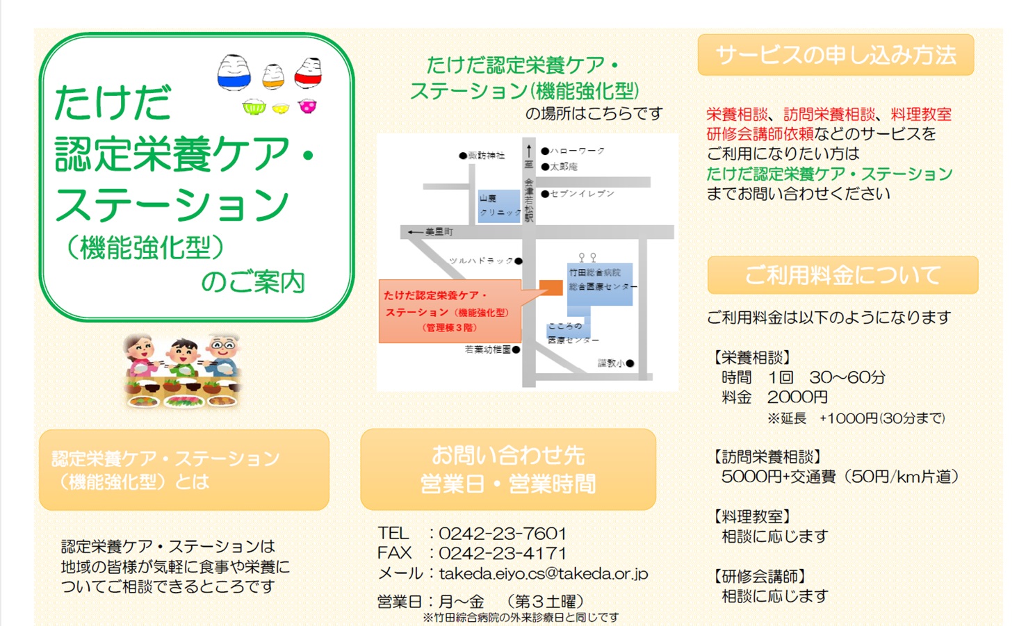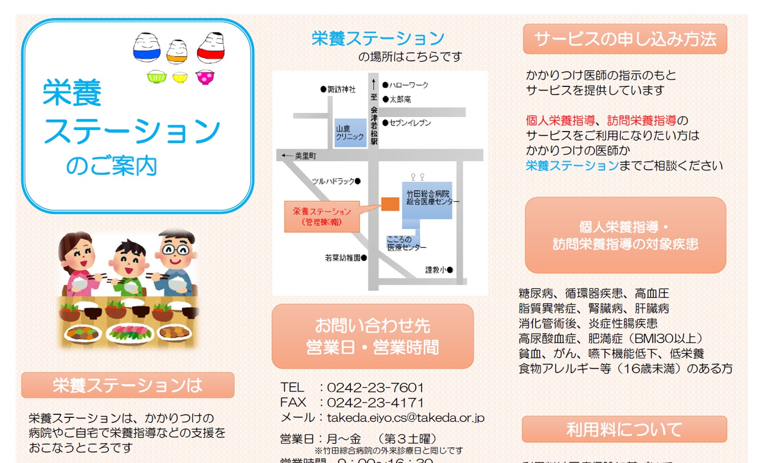 月に1度、竹田綜合病院 総合医療センター1階で無料栄養相談会を開催しています。